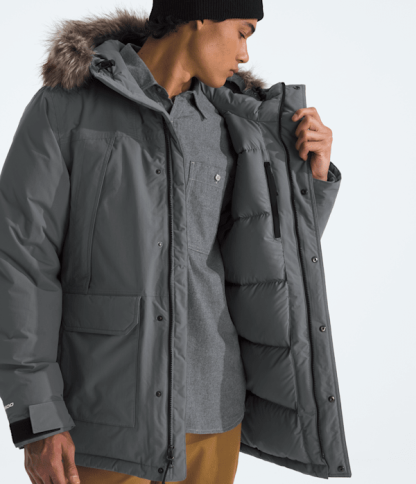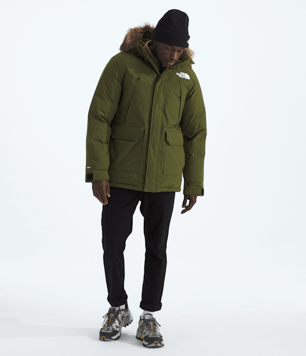 The McMurdo Parka, our longest men's coat, has a long list of must-have features. It is windproof, waterproof, breathable, and insulated with 600-fill recycled down.